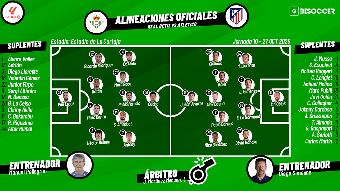 Sevilla, 27 oct (EFE).- El Atlético de Madrid ha logrado en La Cartuja su primera victoria como visitante de la temporada, lo que lo propulsa a puestos de Liga de Campeones en detrimento de un Betis que regaló los dos tantos colchoneros en el primer...